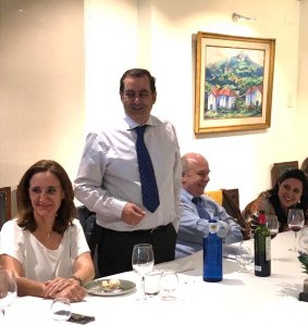 La comida discurrió en un ambiente distendido y al final de la misma el Presidente de la Asociación Galo Díez, pronunció unas palabras, manifestando su satisfacción por la celebración y animando a los compañeros a seguir colaborando con la Junta en la defensa de nuestros intereses, haciendo énfasis en la necesidad de agrupar las competencias de infraestructuras en un único Ministerio.